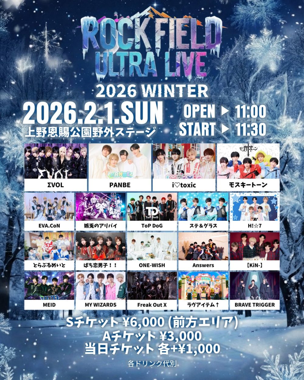 380組以上のアイドルグループを擁するレコード会社「rock field(ロックフィールド)」は、主催ライブイベントの最新回となる「rock field ULTRA LIVE 2026 WINTER」を、2月1日に開催することを決定いたしました。